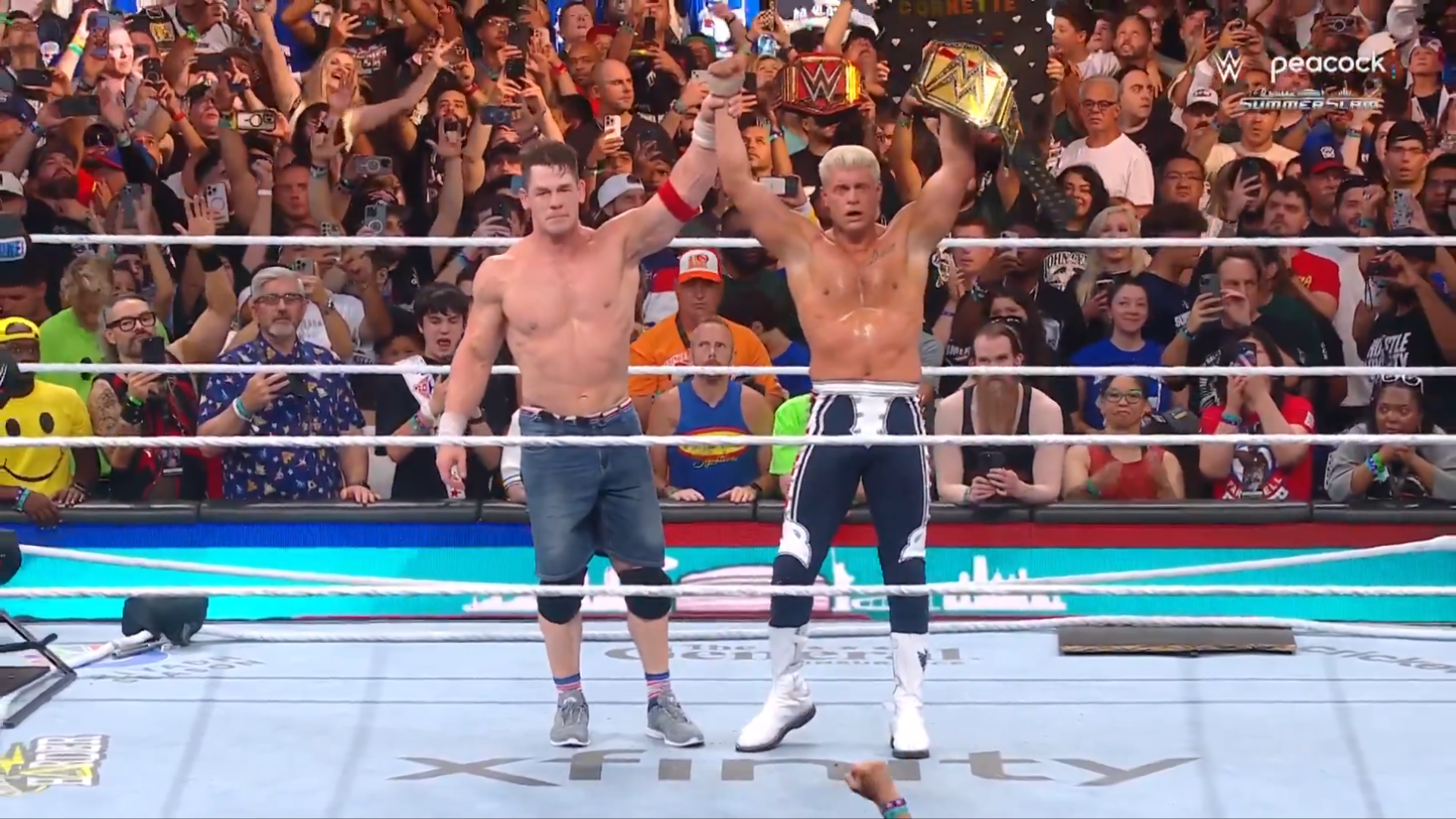 Μετά την αναμέτρηση, οι δύο άνδρες θα εναγκαλιστούν στο κέντρο του ρινγκ με τον John Cena να σηκώνει τον Undisputed WWE τίτλο που μόλις έχασε και να τον παραδίδει στον Cody Rhodes, σαν να του παραδίδει την θέση του επίκεντρου που είχε.